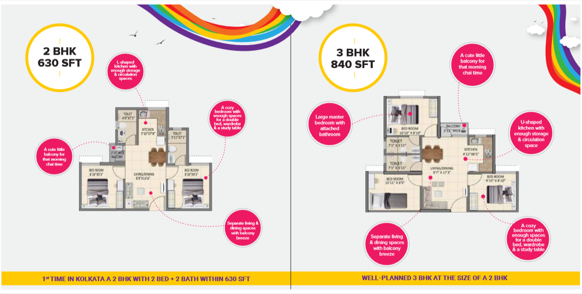 Most developers provide 2BHK homes in the size range of 1000-1500 sqft, but we at Shriram took up the challenge of fitting in a comfortable 1BHK in just 425sqft, 2BHK home in 625 sqft & 3BHK in 850 sq.ft. with the vision of bringing affordable housing to all through innovative and efficient design.